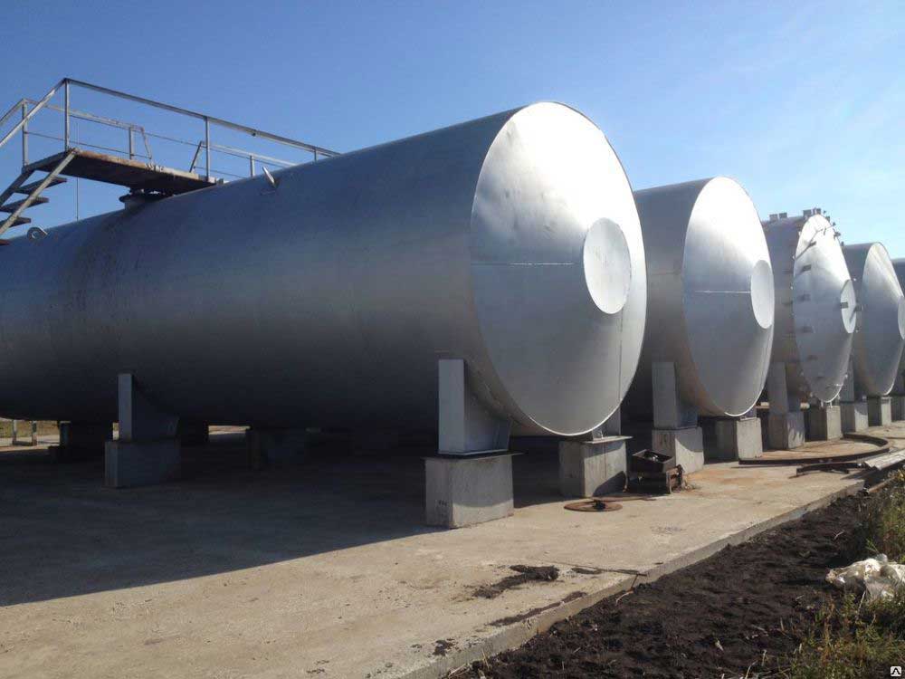Они имеют цилиндрическую форму, нижняя часть в виде конуса обычного или усеченного. Конструкции оснащаются оборудованием, необходимым для эксплуатации горизонтального подземного резервуара. В них имеются шахты-колодцы, обеспечивающие доступ внутрь емкости, горловины для выполнения налива, слива жидкостей.
