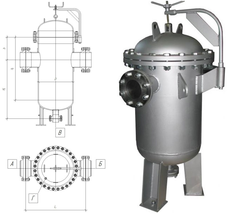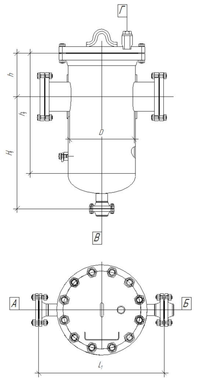 - Исполнение 1 – фильтры со штуцерами и с ответными фланцами (фланцевое соединение)